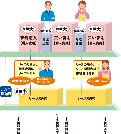 購入とリースでのかかる費用の比較イメージ